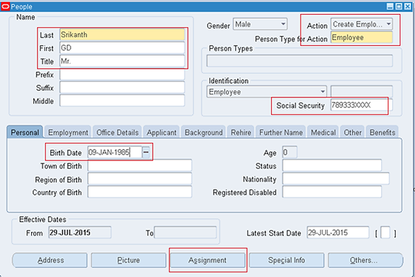 Now go to HRMS Manager >> Under Assignments of Employee creation select Position & Job which we defined above.