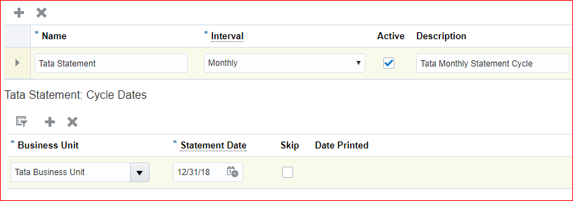 In implementation project search for task ‘Manage Statement Cycles’ >> Create