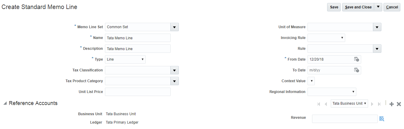 In implementation project search for task ‘Manage Standard Memo Lines’ >> Create