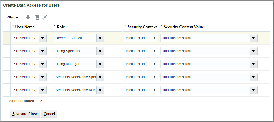FSM page search for task ‘Manage Data Access for Users’ and assign above roles with Security Context as BU.