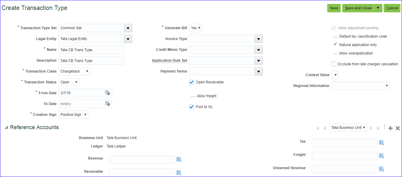 Charge back (Name: Tata CB Trans Type; Creation Sign: Positive Sign)
