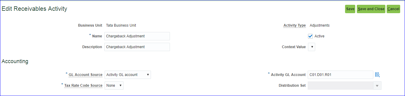 FSM >> Tasks >> Search >> ‘Manage Receivables Activities’ >> Search you BU >> System automatically creates ‘Chargeback Adjustment’ >> Click on Name