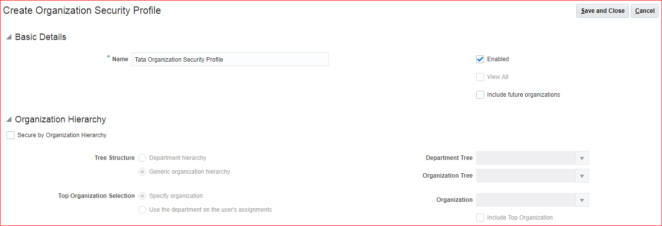 In FSM search for task ‘Assign Security Profiles to Role’ >> Create >> Data Role: Tata One BU Access; Job Role: Accounts Payable Manager >> Next >> Person Security Profile: Create New; Name: Tata; Enable Secure by Business Unit; Public Person Security Profile: Tata; Payroll Security Profile: Create New; Name: Tata Payroll >> Next >> Secure by Business Unit: Tata Organization Security Profile >> Assignments to Evaluate: All>> Next >> Next >> Next >> Submit