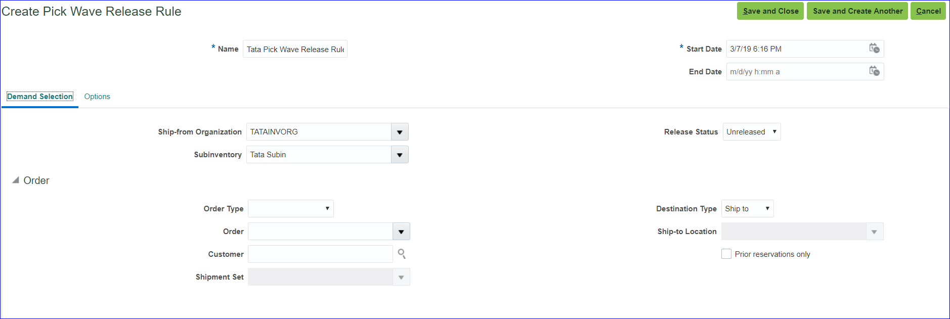 Implementation project >> Task ‘Manage Pick Wave Release Rules’ >> Create
