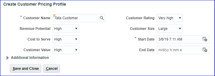 Pricing Administration >> Tasks >> Manage Customer Pricing Profiles >> Create