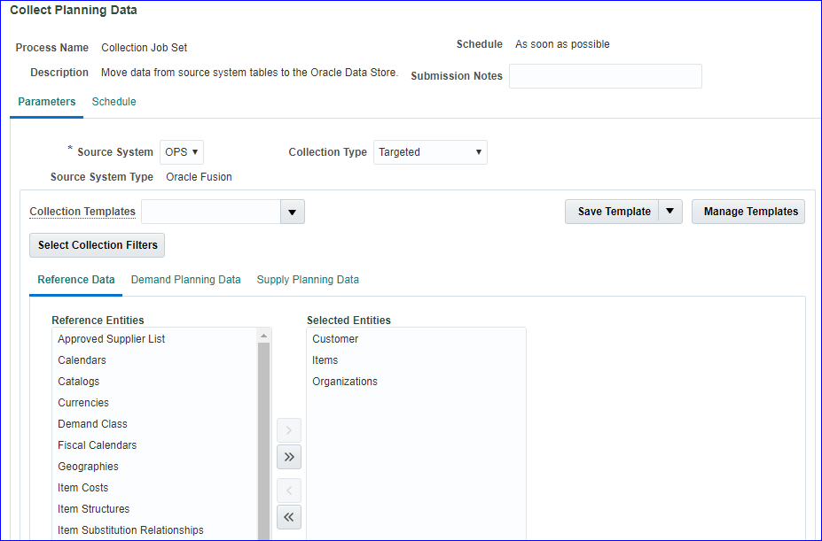 Supply Chain Planning >> Plan Inputs >> Tasks >> Collect Planning Data >> Source System: OPS