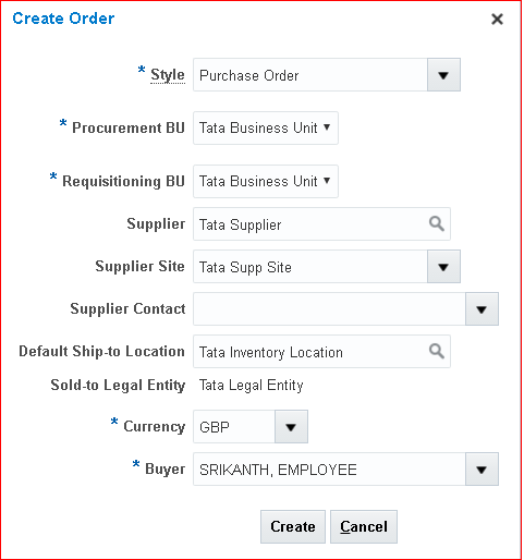 Navigator >> Procurement >> Purchase Requisitions >> More Tasks >> Enter Requisition Line >> Deliver to Location: Tata Inventory Location >> Save and Close