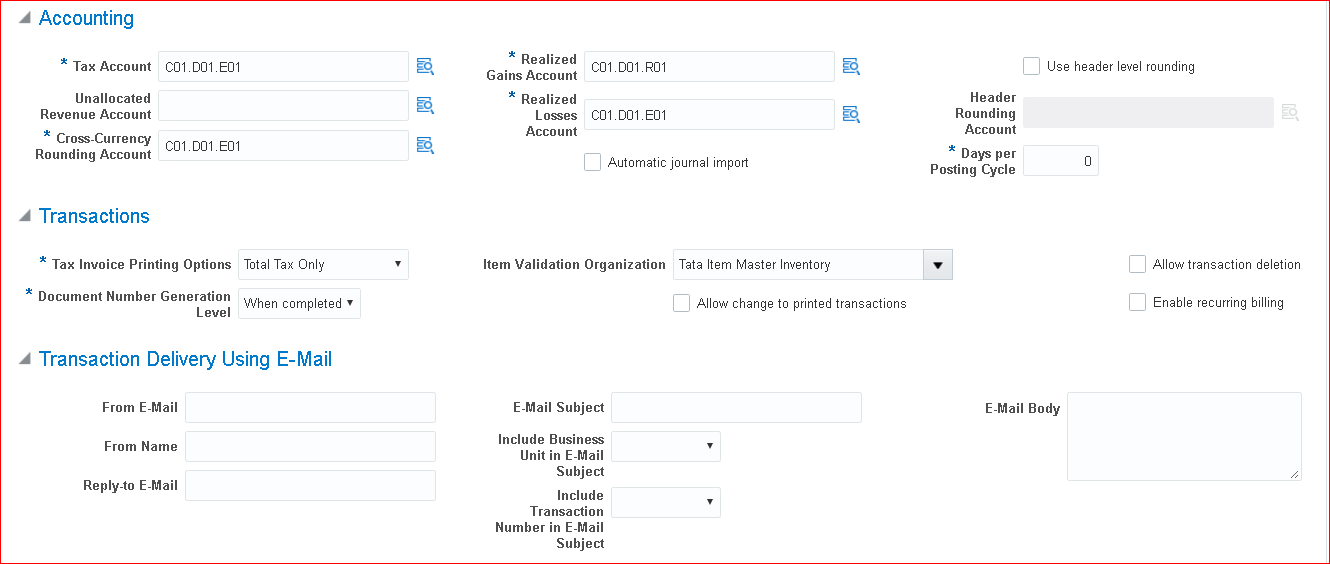 1. Receivables System Options configuration Implementation project >> Task 'Manage Receivables System Options' >> Create >>