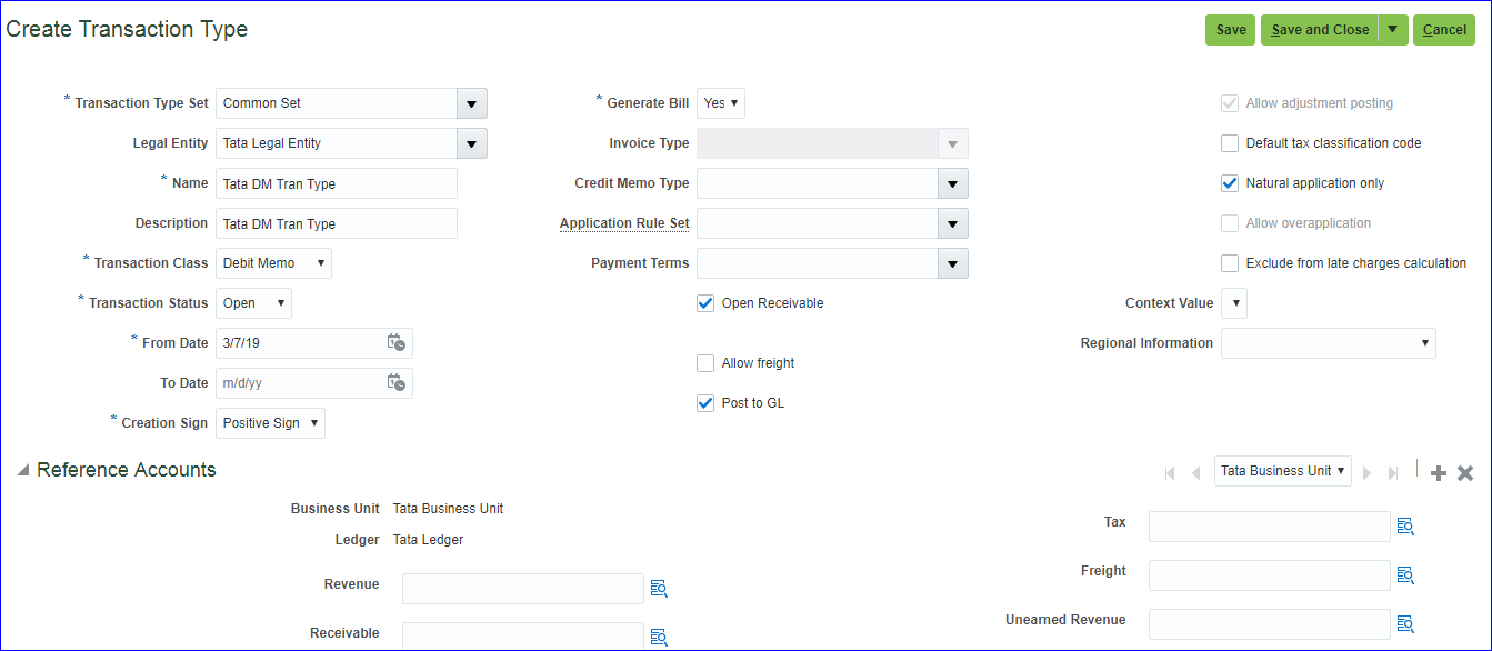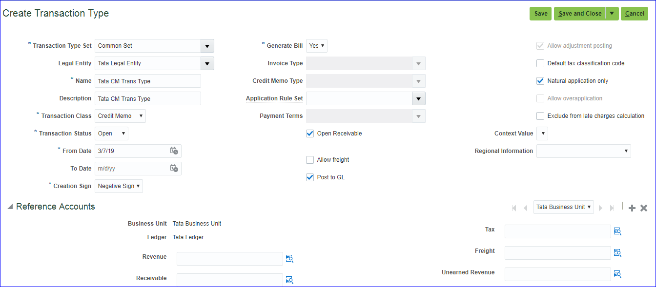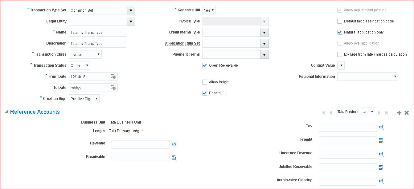 2. Define Transaction Types Implementation project >> Task 'Manage Transaction Types' >> Create