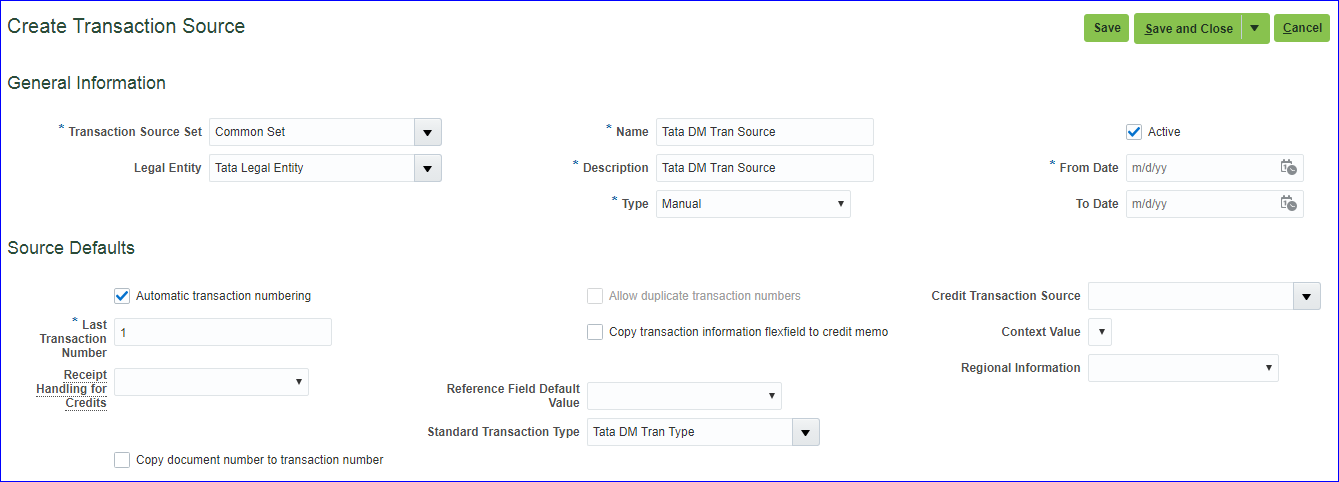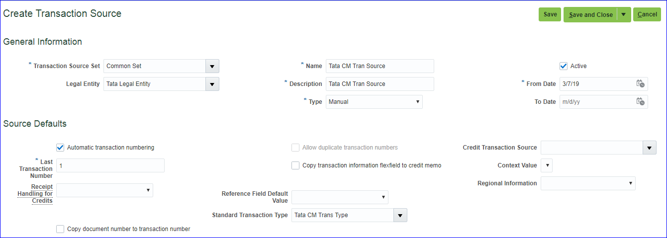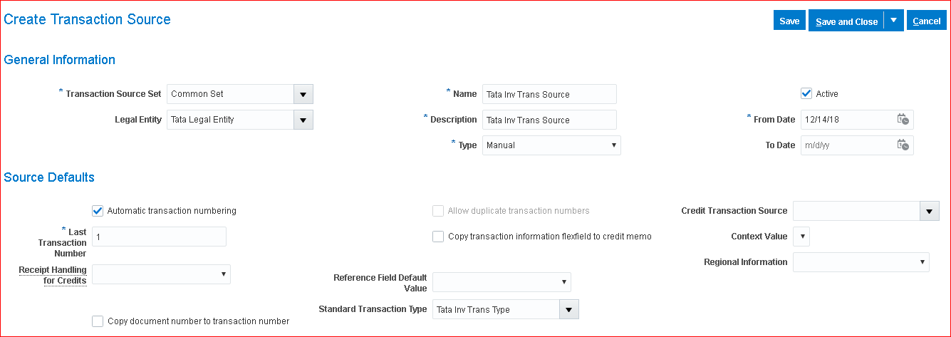 3. Define Transaction Sources Implementation project >> Task 'Manage Transaction Sources' >> Create