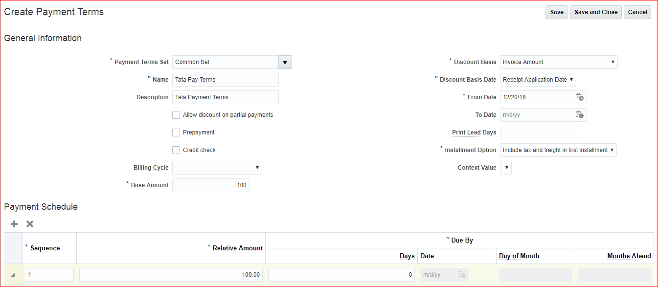 5. Create Payment Terms In implementation project search for task 'Manage Receivables Payment Terms' >> Create