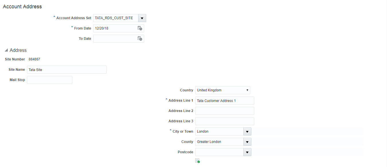 10. Assign RDS (customer site) to BU In implementation project search for task 'Manage Business Unit Set Assignment' (Path - Financials) >> For Customer Account Site assign 'TATA_RDS_CUST_SITE' >> Save and Close