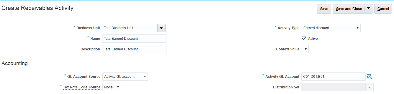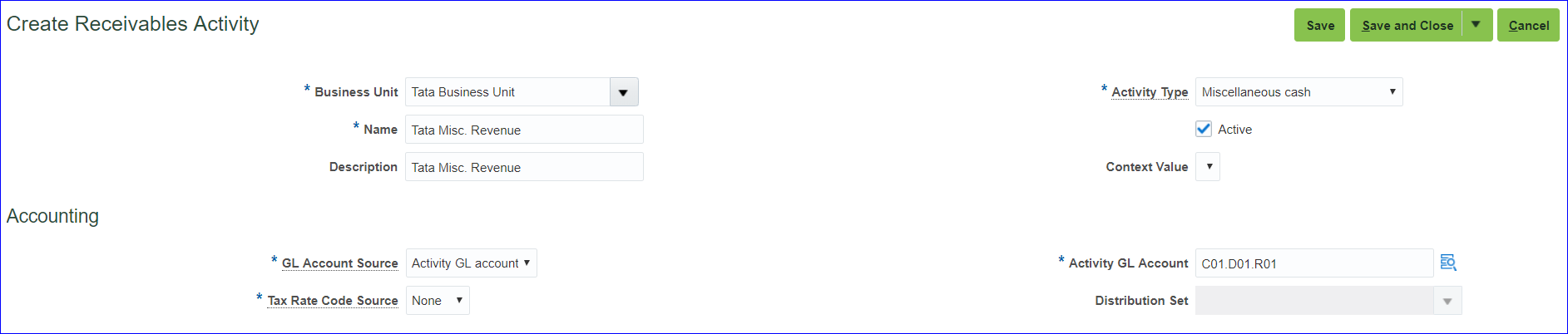 14. Create receivable activities In implementation project search for task 'Manage Receivables Activities' >> Create