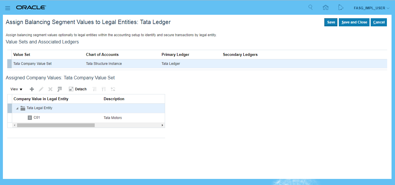 Assign Balancing Segment Values to Legal Entities Setup and Maintenance >> Search for task 'Assign Balancing Segment Values to Legal Entities' >> Click on 'Go to Task' >> Click on Create >> Here we are trying to calculate tax only for C01 company hence we selected only one. For other companies we will create another legal entities and assign them to 'Tata Ledger'.