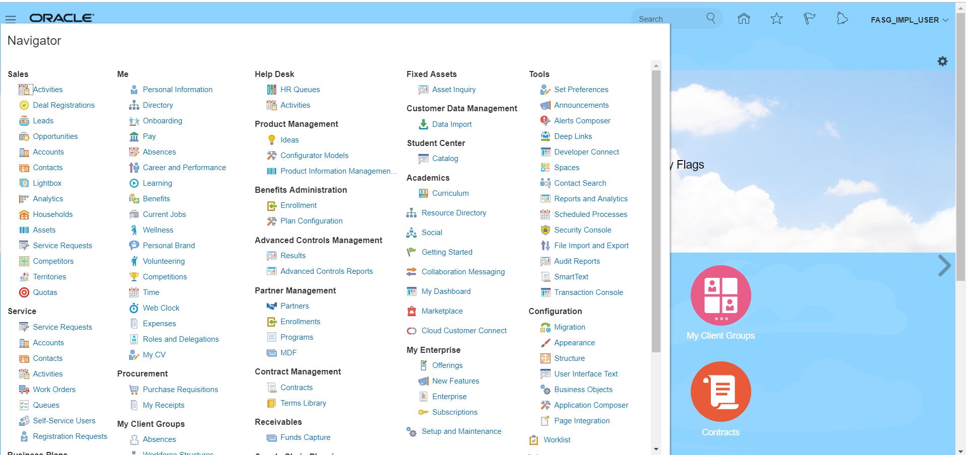 Under FASG_IMPL_USER >> Setup and Maintenance. Here Setup and Maintenance = FSM