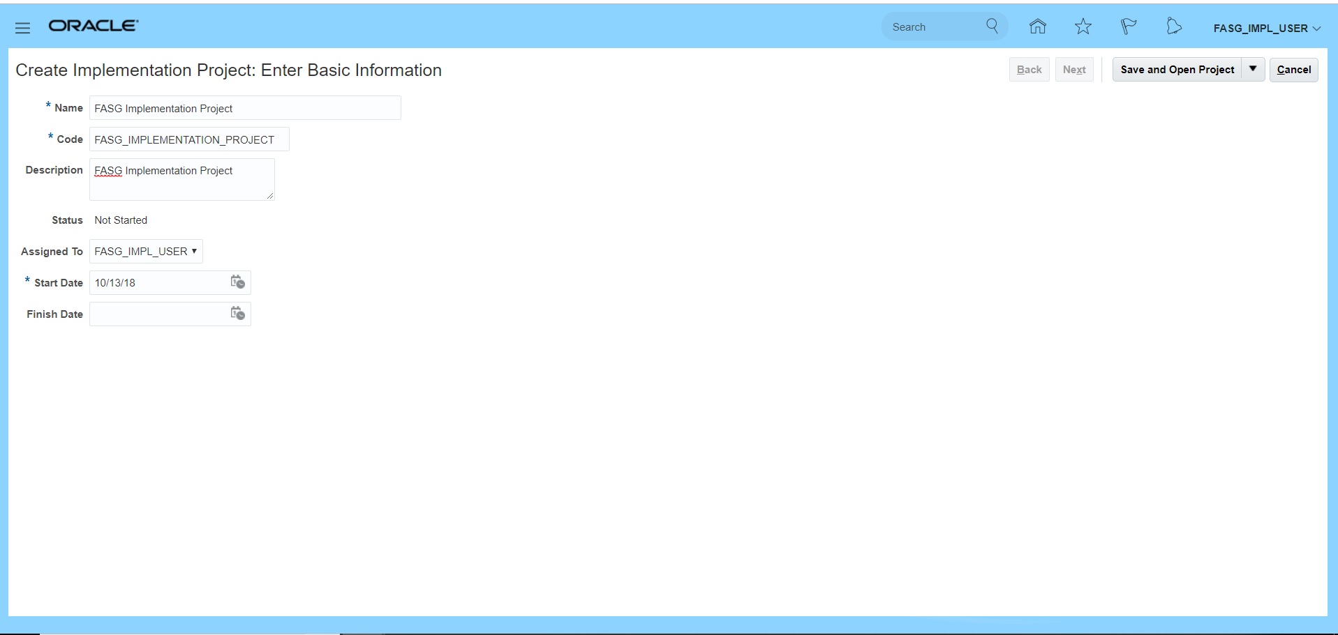 Navigation: Manage Implementation Projects >> Search for your project {FASG Implementation Project}