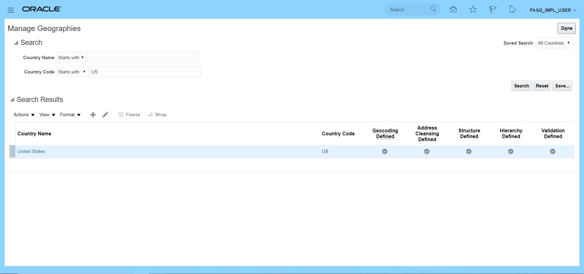 Manage Geographies Setup and Maintenance >> Search for task 'Manage Geographies' >> Click on hyperlink >> Search for Country Code 'US' >> Make sure all are enabled/ completed.