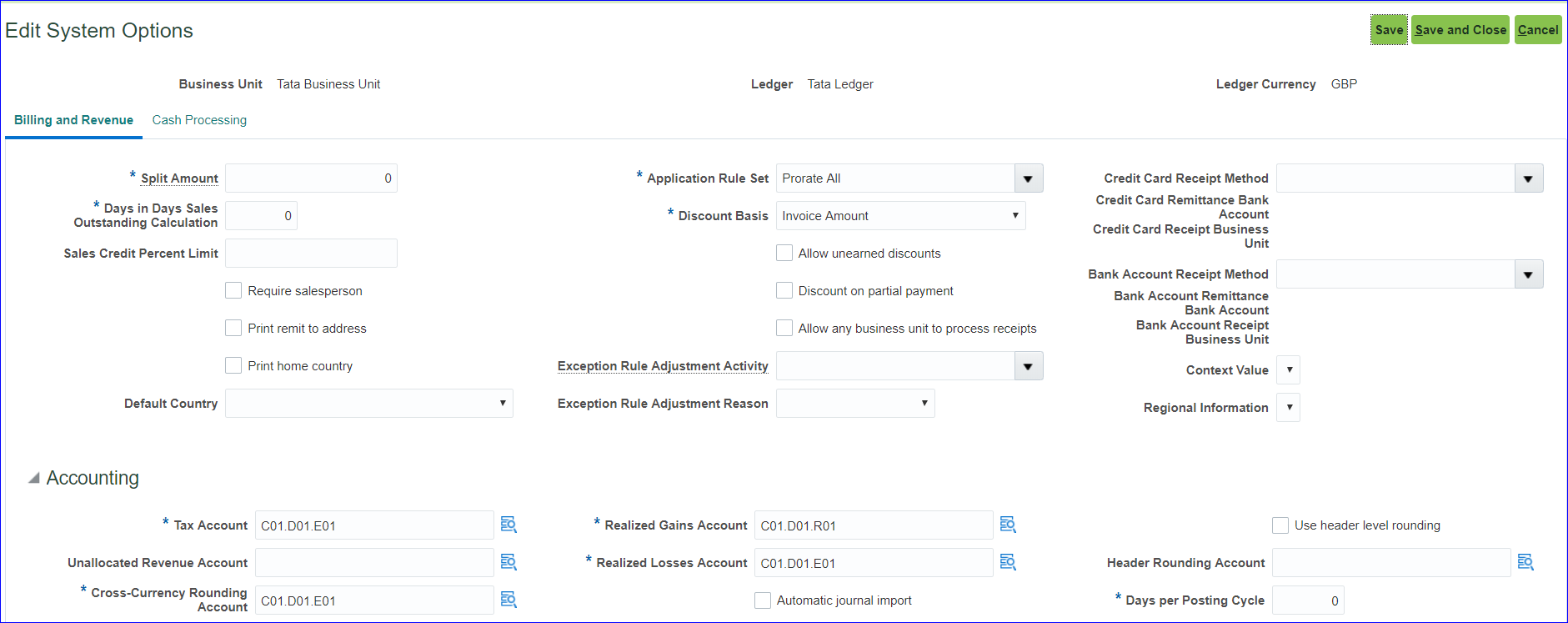 16. Setup Customer account description In sales order bill to = Customer account description Implementation project >> Task 'Manage Customers' >> Search your customer >> At Accounts level we can see the Account Description is blank >> Click on account number >> Enter Account description: Tata Customer Account Desc >> Save and Close