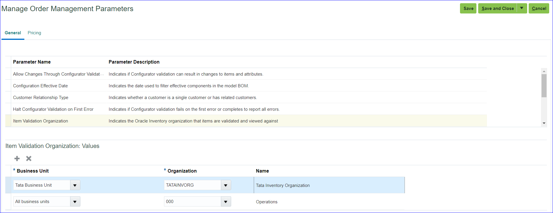 2. Setup Order Management parameters Implementation project >> Task 'Manage Order Management Parameters' (Path: Order Management > Define Orders) >> Select 'Item Validation Organization' and enter BU