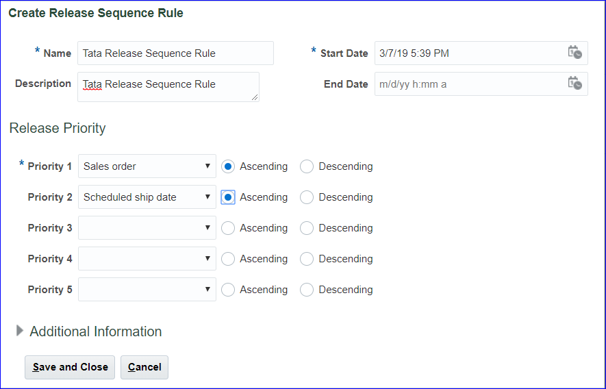 3. Create Release Sequence Rules Implementation project >> Task 'Manage Release Sequence Rules' >> Create