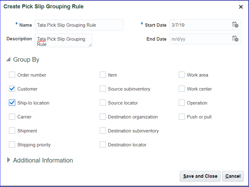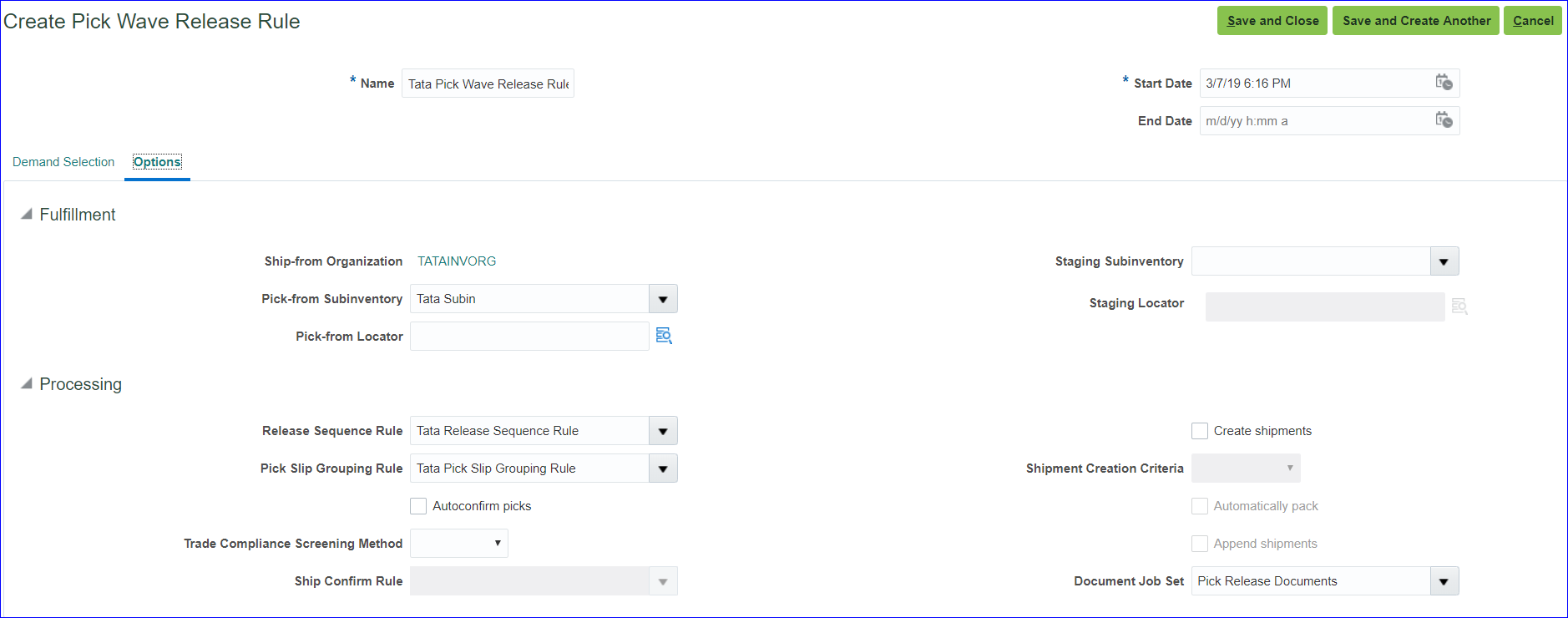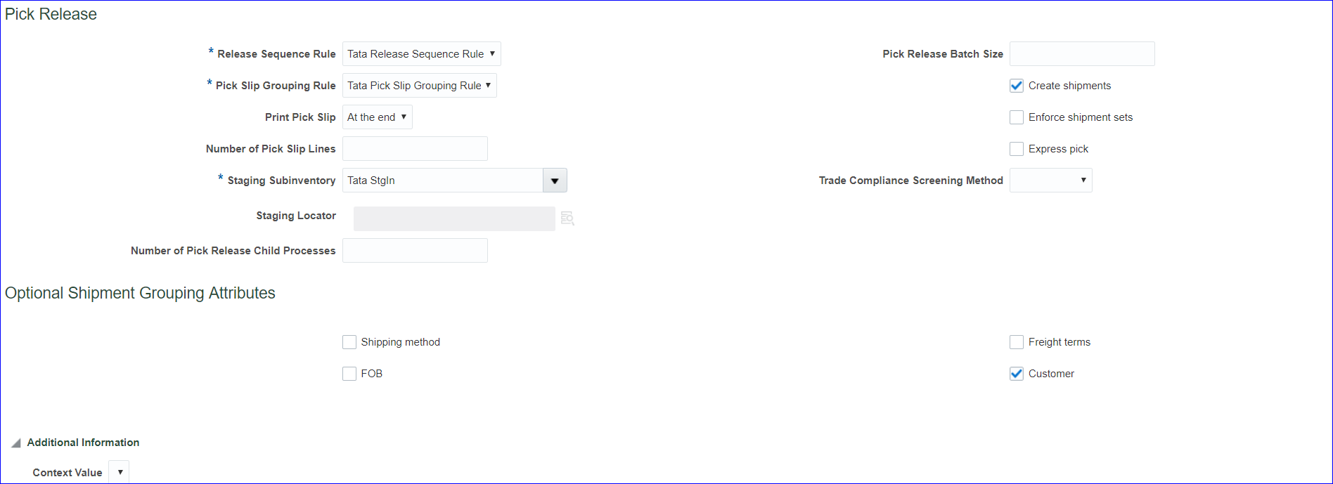4. Create Pick Slip Grouping Rules Implementation project >> Task 'Manage Pick Slip Grouping Rules' >> Create
