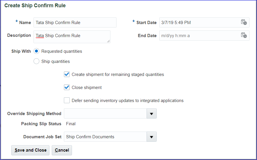 5. Define Ship Confirm Rules Implementation project >> Task 'Manage Ship Confirm Rules' >> Create