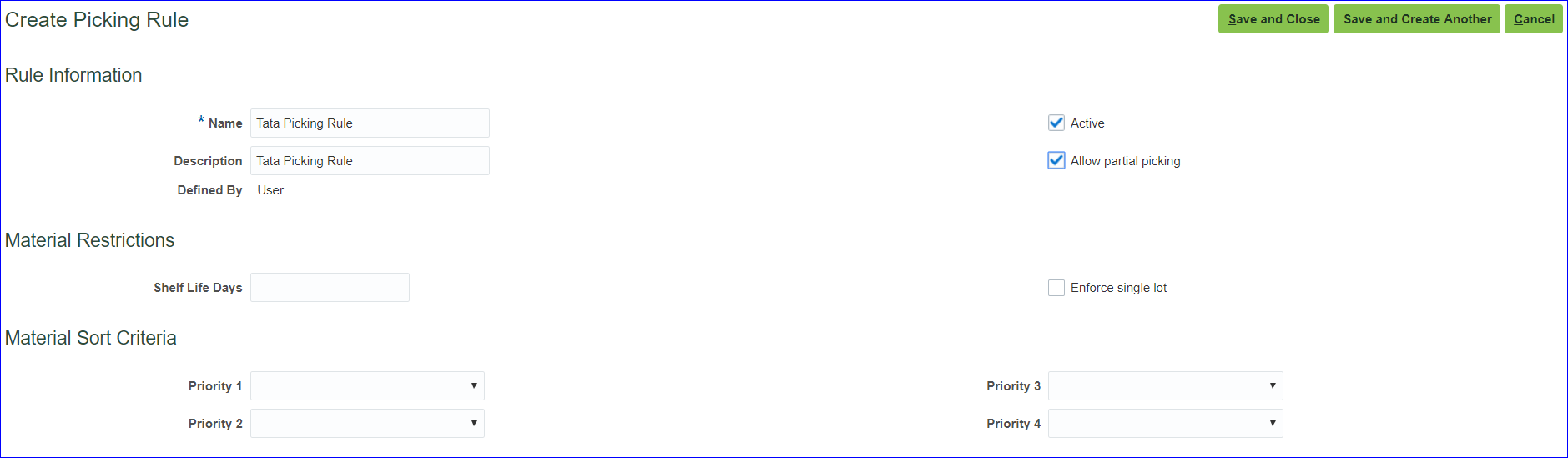 6. Create Picking Rules Implementation project >> Task 'Manage Picking Rules' >> Create
