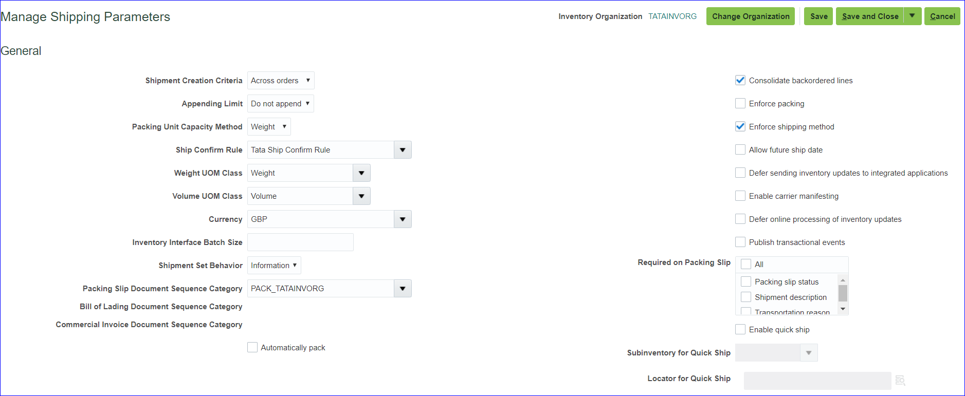 10. Configure Shipping Parameters Implementation project >> Task 'Manage Shipping Parameters'
