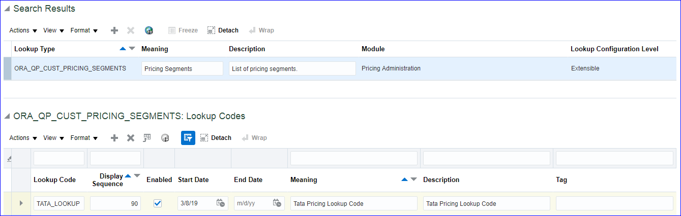 21. Create Pricing Segment Value (Standard Lookups) FSM >> Tasks >> Search >> 'Manage Standard Lookups' >> In lookup type search with 'ORA_QP_CUST_PRICING_SEGMENTS' >> Create