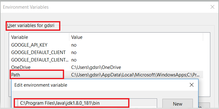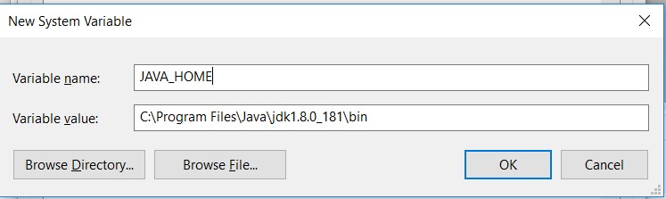 Also make sure to enter the path (C:\Program Files\Java\jdk1.8.0_181\bin) under “User variables” >> Path as well