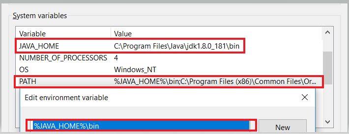 Next select System Variable “PATH” and click on Edit >> New and enter %JAVA_HOME%\bin >> Ok >> Ok