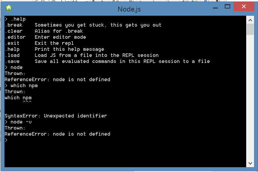 Command is node –v