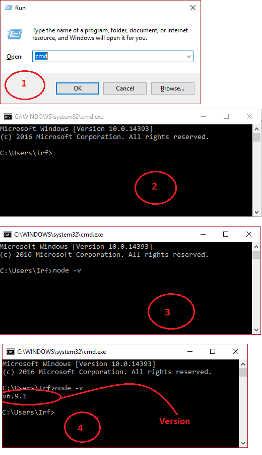 Step 4: To check If Node JS and NPM is installed properly or not, Go to Run and Type cmd